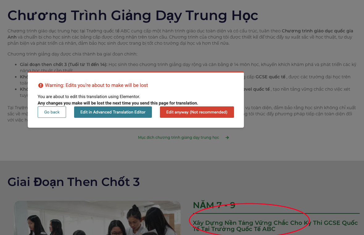 I am working on a site under development and need to change the design of a page in Elementor that has already been translated from English to Vietnamese. Due to Vietnamese characters, I need to decrease font size and line spacing. The translation is fine.