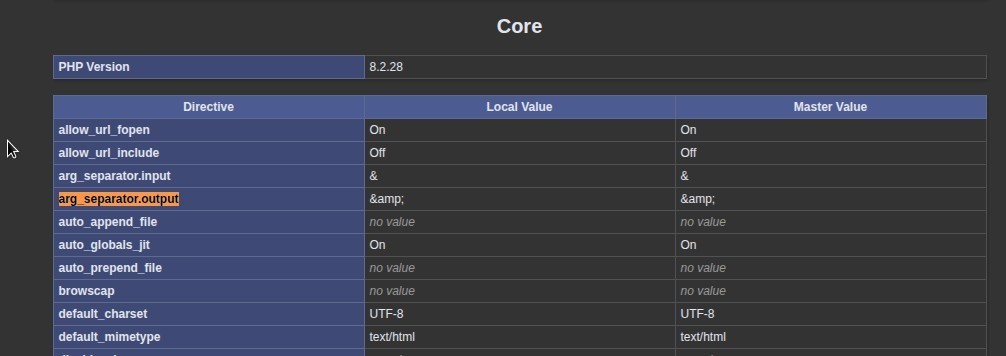 I further analysed your site as you have very usefully put there a phpinfo script. arg_separator.output = & |