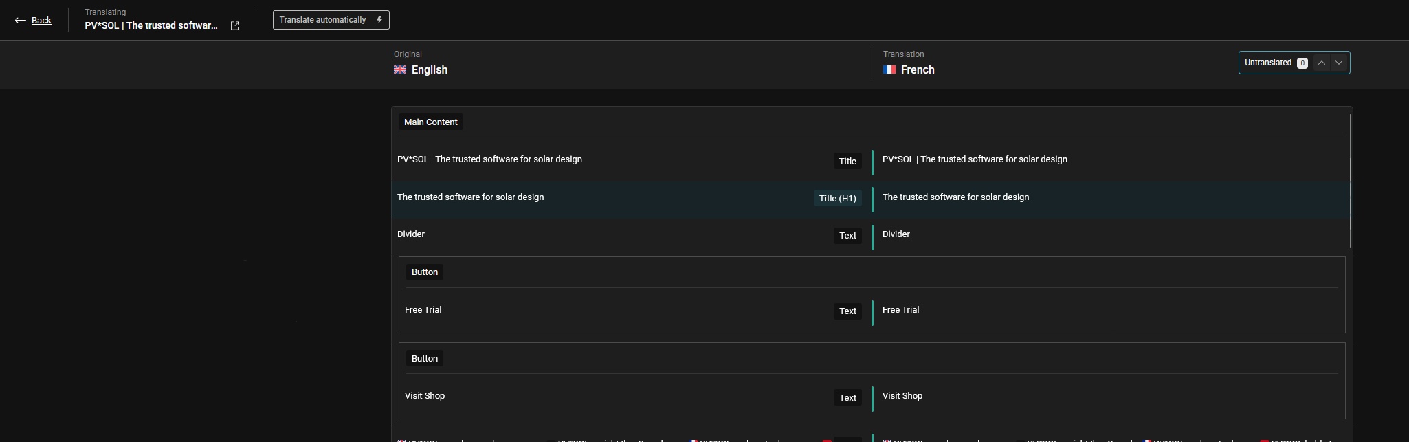 Sie haben eine fehlerhafte französische Übersetzung einer englischen Seite auf Ihrer WPML-Website, die die englischen Originalinhalte komplett übernommen hat. Sie möchten diese Übersetzung löschen und die Seite automatisch neu in Französisch übersetzen, aber die Löschversuche, einschließlich manueller Eingriffe und einer kompletten Neuinstallation von WPML, waren erfolglos.