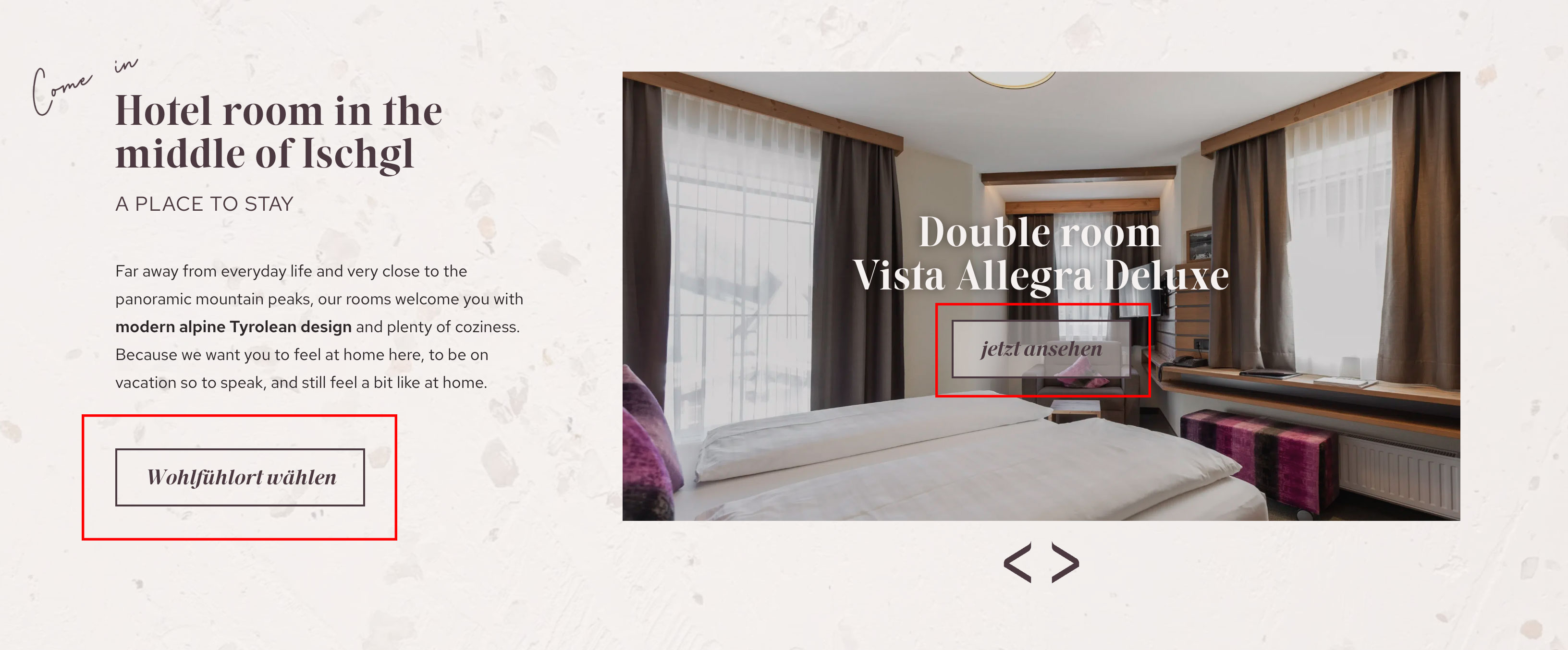 Aber in diesem Zug kommt ein neues Problem auf: Die Links führen zur richtigen Zielseite, aber die Button-Texte sind nicht übersetzt, diese werden nun in der Originalsprache (deutsch) angezeigt!
