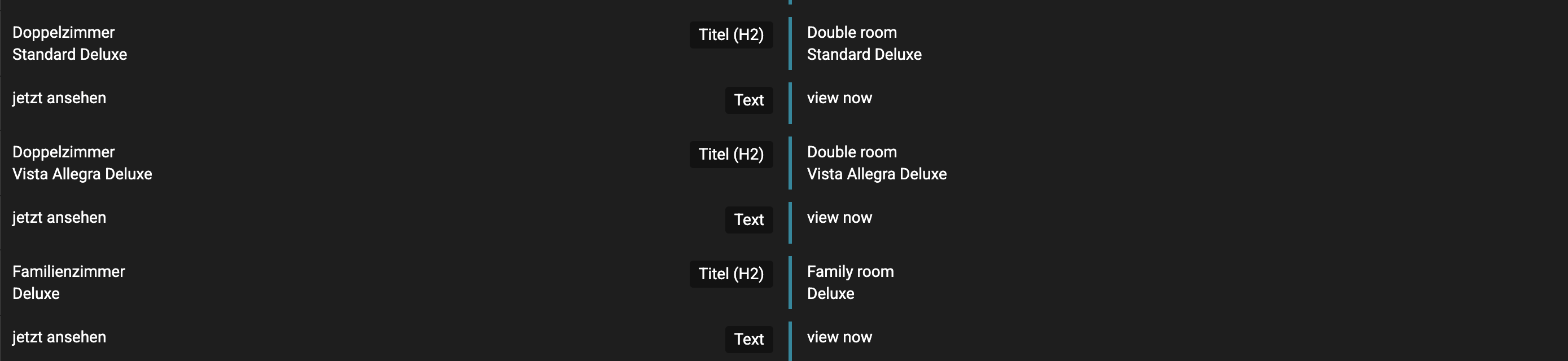 Außerdem ist es, so wie du bereits erwähnt hast, dass nun alle Buttons inkl. interne Verlinkungen übersetzt werden müssen.