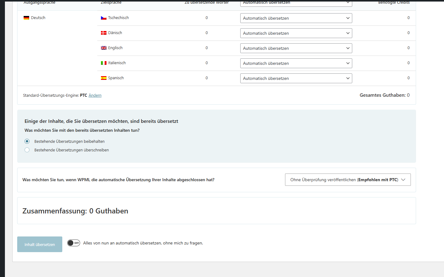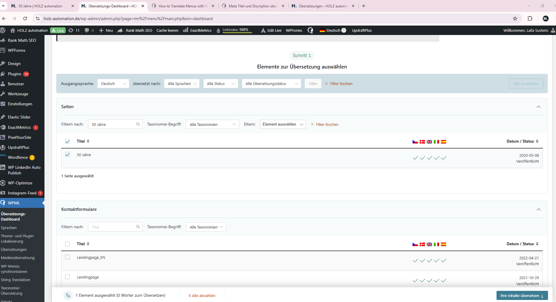Das Problem ist, dass nun alle Webseiten übersetzt sind und ein abgeschlossen Haken haben. Aber die Metadaten nicht mehr übersetzt werden.