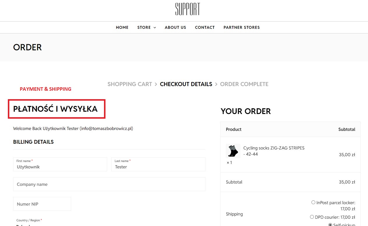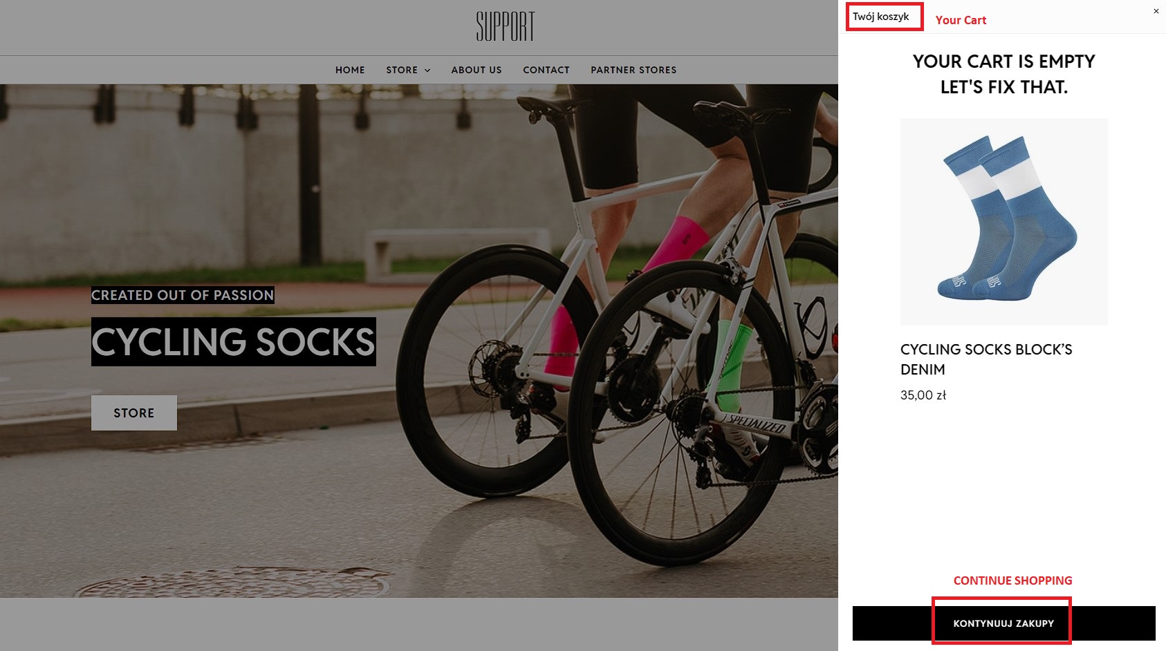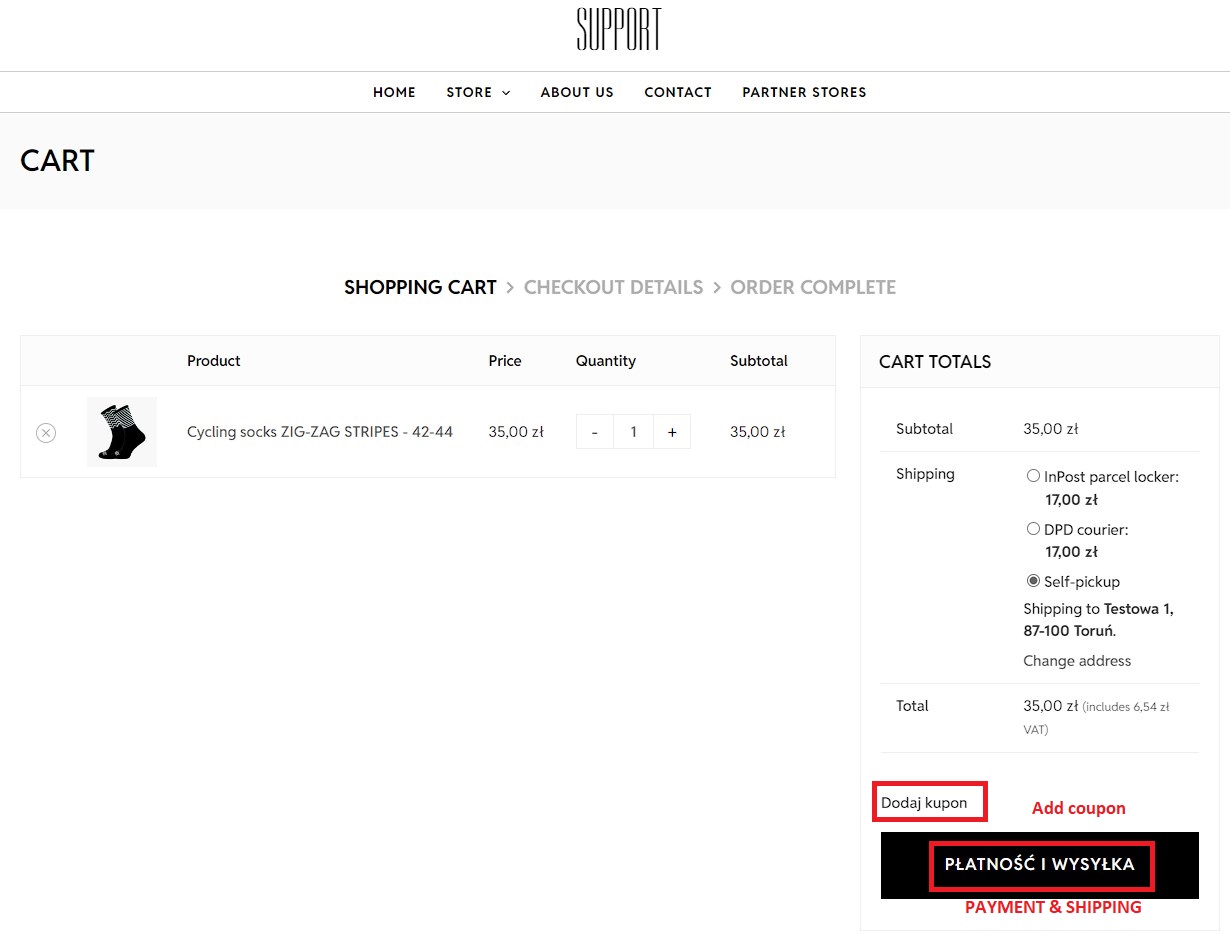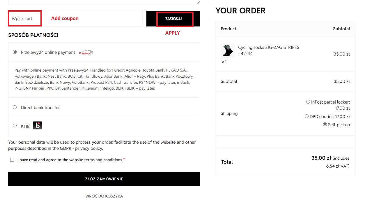 4. On the Order page (after you click PŁATNOŚĆ I WYSYŁKA button on Cart page), the coupon panel, headings, and buttons are not translated. Screenshots 4A, 4B and 4C. versteckter Link