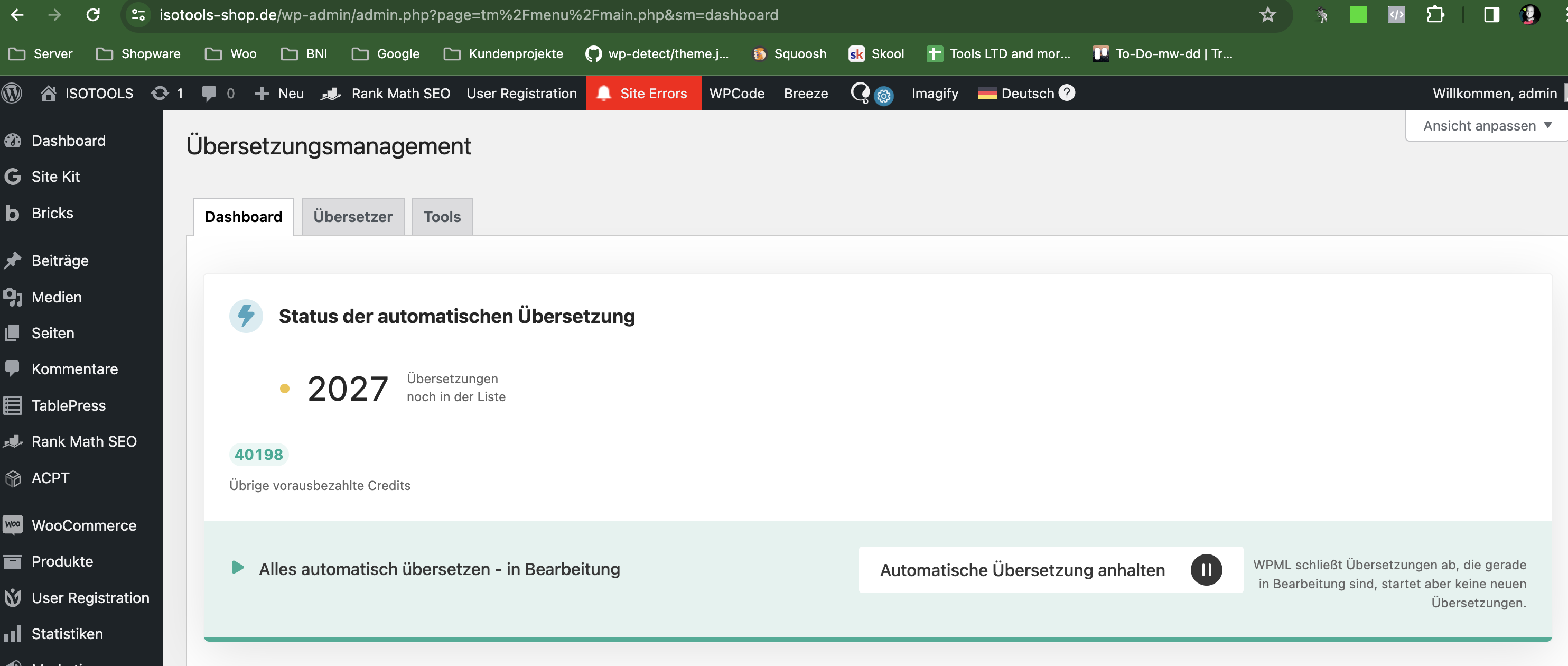 Sie nehmen an, dass 2027 Übersetzungen offen sind, was jedoch nicht der Fall ist. Öffnen Sie die Produkte sowie die Seiten und prüfen Sie es dort. Es sind alle 342 Produkte sowie 16 Seiten übersetzt & veröffentlicht. Können Sie dies bestätigen? Dann prüfen wir, warum "2027" ausgegeben wird.