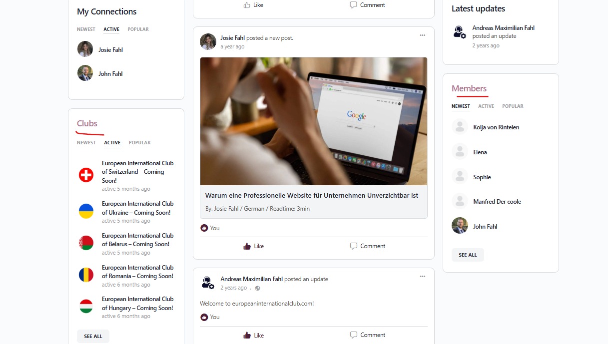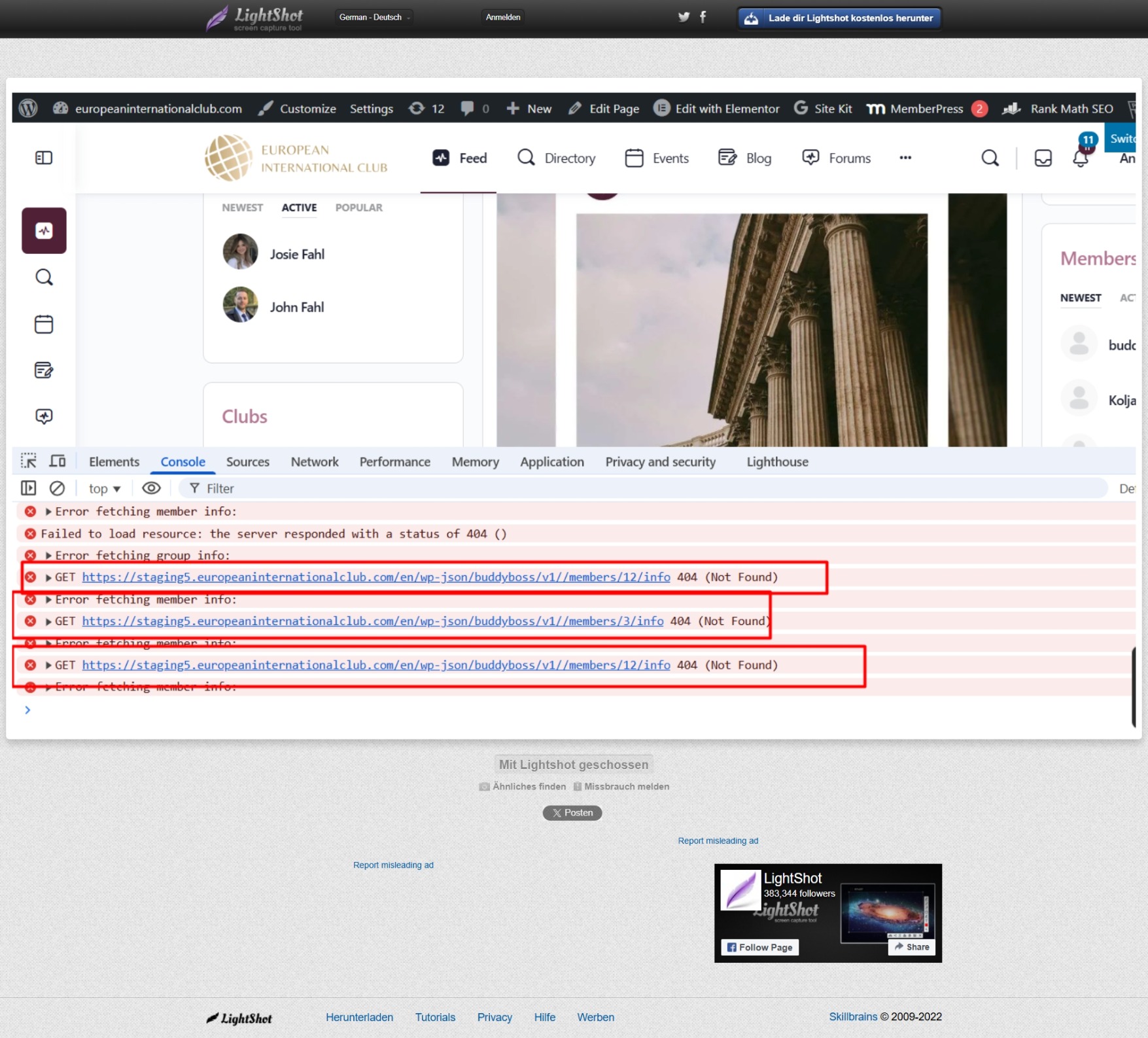Hallo Andreas, danke für deine Antwort. Ich habe die sandbox geöffnet und wollte das Problem replizeiren. Allerdings habe ich Probleme, verschiedene Seiten zu öffnen vom Backend aus. Es kommt Notice: Function _load_textdomain_just_in_time was called incorrectly. Translation loading for the buddyboss domain was triggered too early. This is usually an indicator for some code in the plugin or theme running too early. Translations should be loaded at the init action or later. Please see Debugging in WordPress for more information. (This message was added in version 6.7.0.) in /var/www/sites/tuneful-whistle/wp-includes/functions.php on line 6121 Oft lädt die Seite nach dem Aktualisieren aber trotzdem - aber nicht immer. Trotzdem konnte ich das members directory widget zu dem news feed hinzufügen. Wenn man in der sandbox auf das member profile mit dem Mauszeiger geht kommt jedoch gar nichts. Wenn man sonst ( live seite und staging site ) auf das member profile geht, dann wird es zwar nicht korrekt angezeigt, allerdings kommt zumindest zuerst die leere Info und dann die Meldung failed to load data. Zu erwähnen ist eventuell noch, dass der Anzeigefehler nicht nur die member profile betrifft, sondern auch bei groups ( clubs ) auftritt. ( siehe Feed staging site ). Ich hoffe, du kannst mit dem, was ich in der Sandbox hinzugefügt habe arbeiten. Falls Du weitere Informationen oder weiteres benötigen solltest, lass es mich gerne wissen. Nochmals vielen Dank und liebe Grüsse, Andreas |