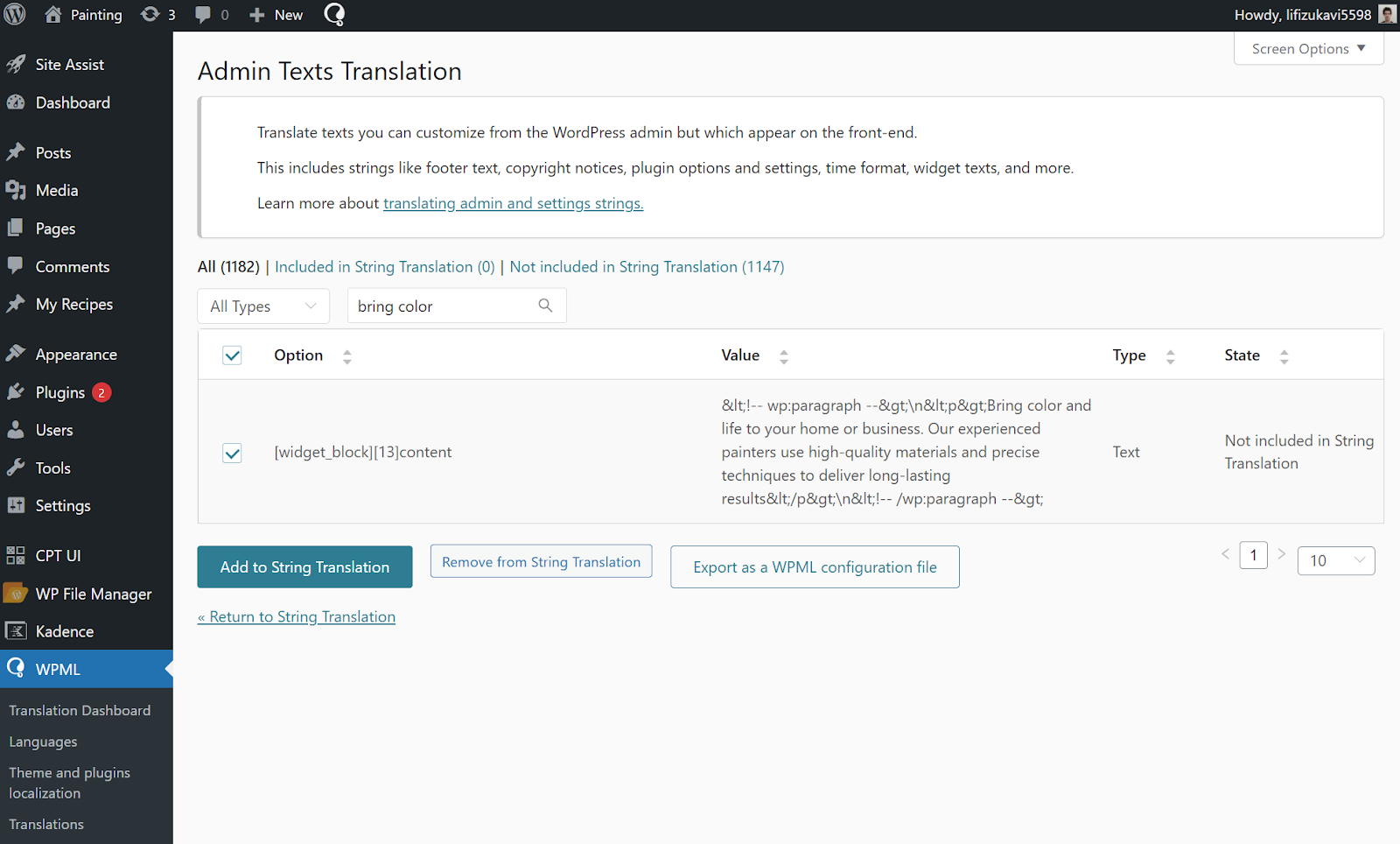 - Next, go to WPML → String Translation and scroll down to Not seeing strings you are looking for section.