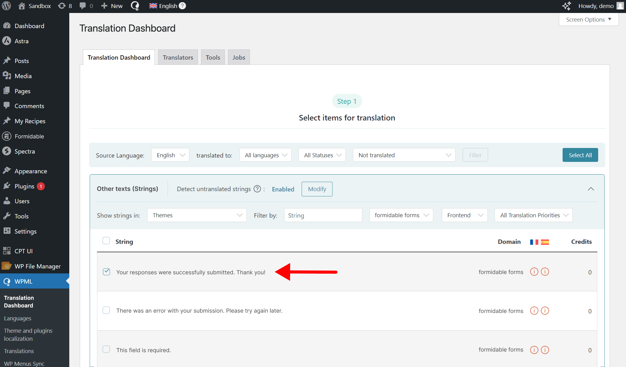 To translate Formidable Forms with WPML, install and activate the following plugins: