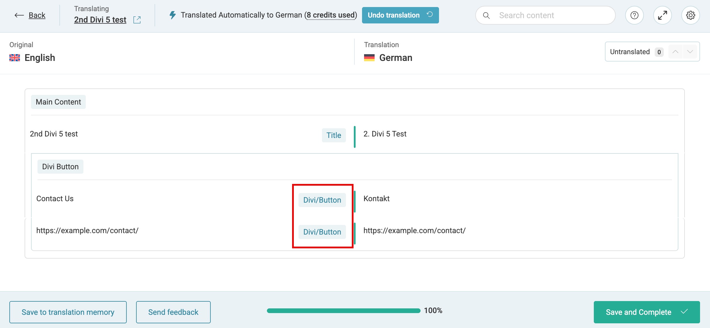 Translating the Divi page using the Translation Dashboard
