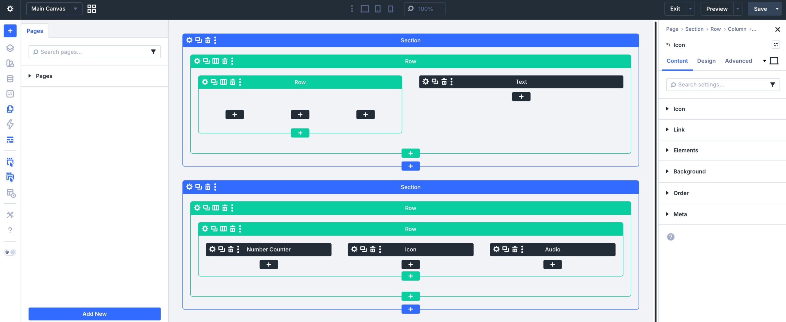 To understand how the Divi builder works with WPML, let’s start by creating a simple page using the Divi Builder. We added a few modules in our example below, such as Text, a Number Counter, an Icon, etc.