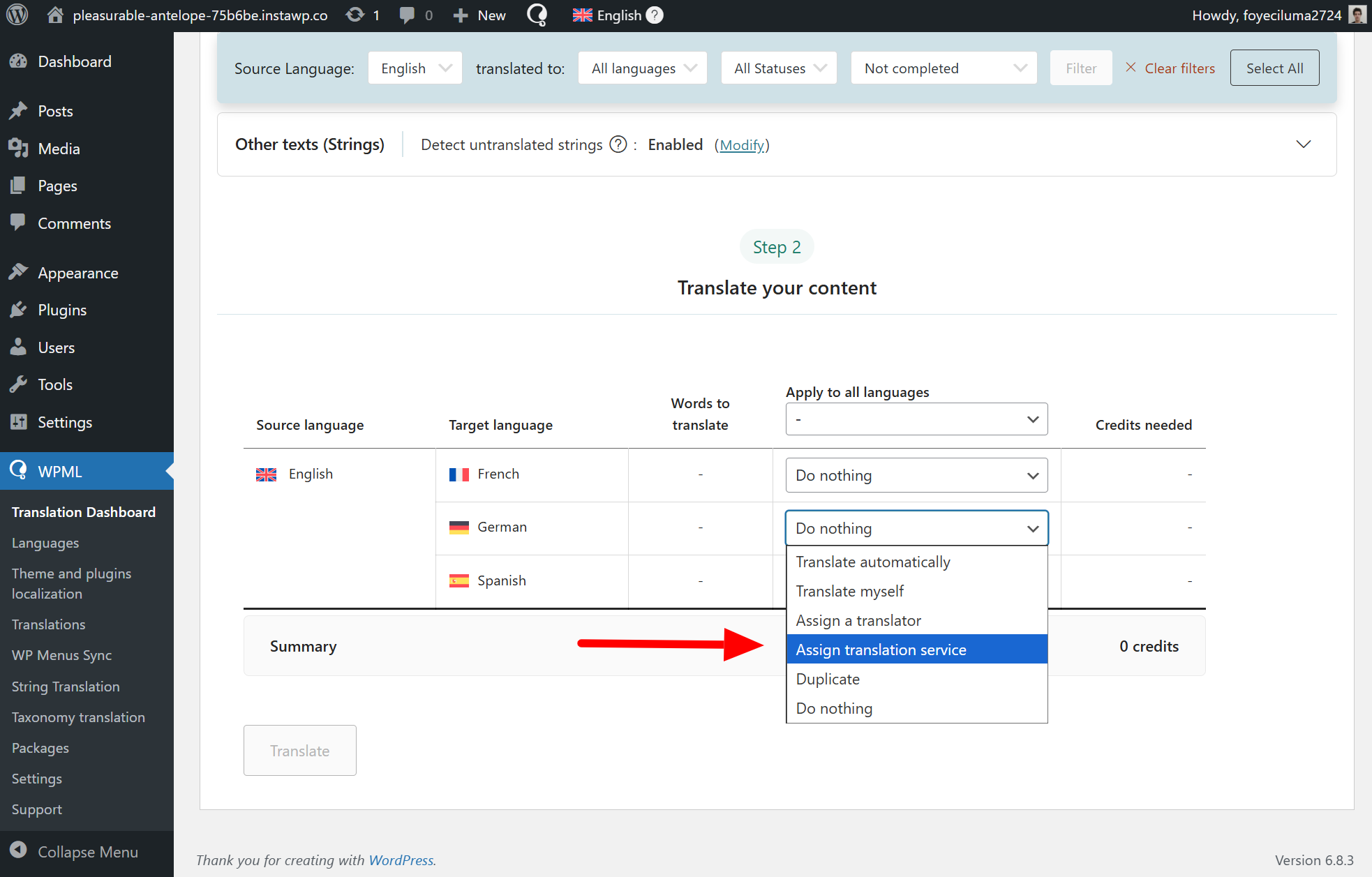 To get started with translation services, you need WPML’s Multilingual CMS or Multilingual Agency account.