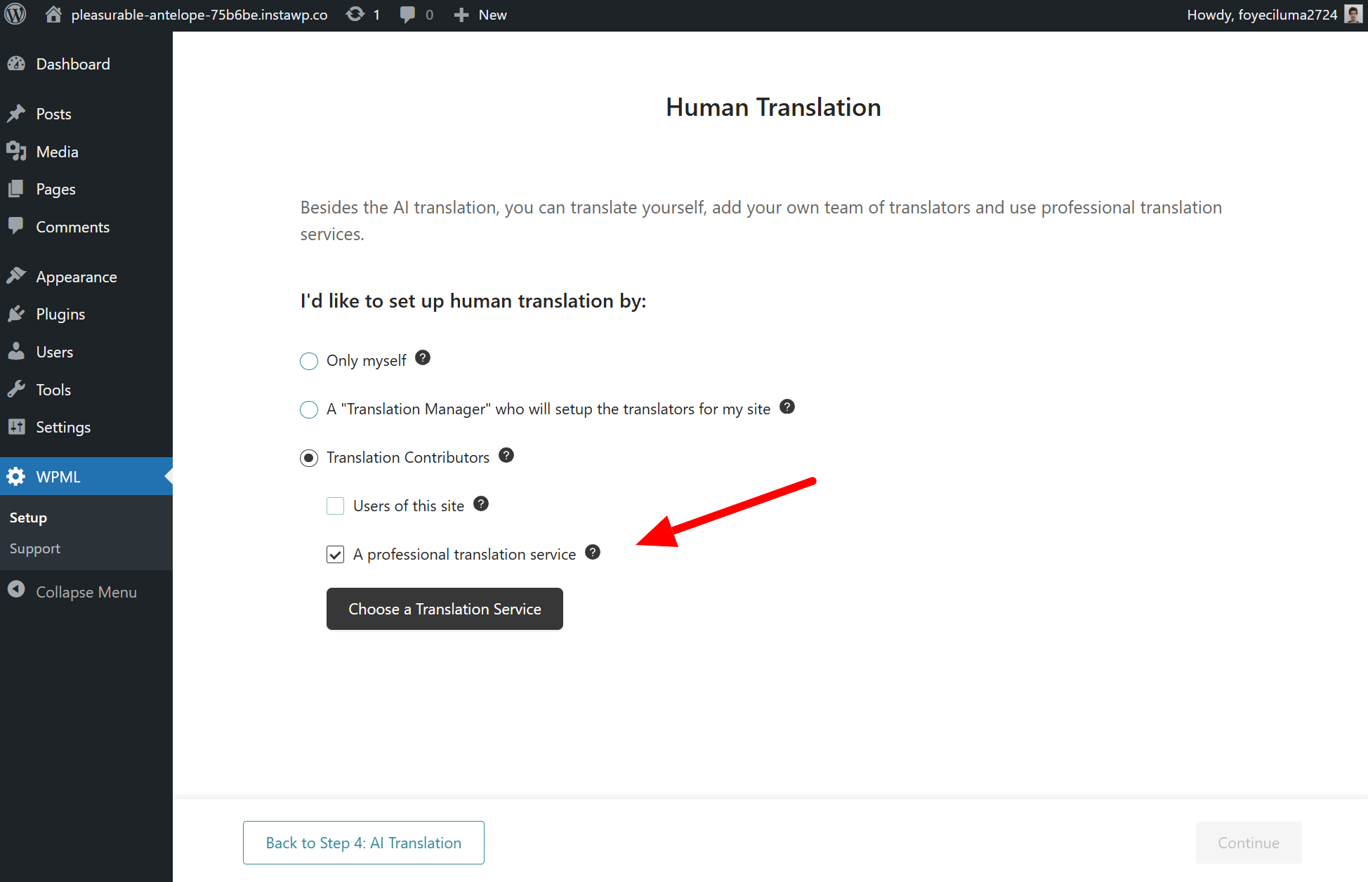 WPML offers two ways to connect your website to a translation service: during the setup wizard, or in the Translation Dashboard → Translators tab.