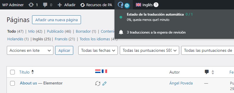 2. Asegurarse de que la traducción de la página esté realmente finalizada, ya que un icono de rueda dentada indica que aún se necesita terminar la traducción.