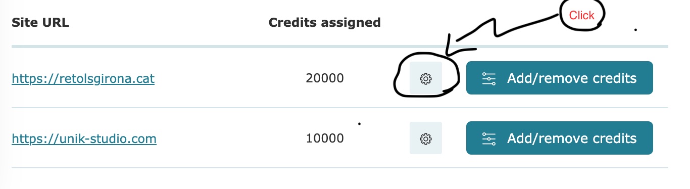 muchas gracias por tu ayuda. Te cuento un poco más. Inicialmente, teníamos el site enlace oculto registrado con vosotros. Más adelante lo clonamos y lo usamos de base para el site enlace oculto y también lo dimos de alta con vosotros y le asignamos créditos.