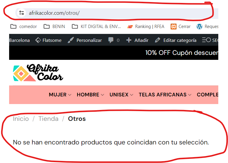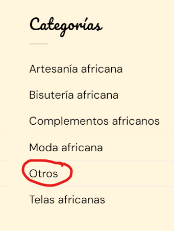 Tengo un problema y sigo sin encontrar la solución. No se si se debe a una mala traducción o a que se debe. La categoría sin categoría (actual Otros) muestran productos. En realidad, no tiene productos dicha categoría pero muestra 2 productos que no se visualizan.