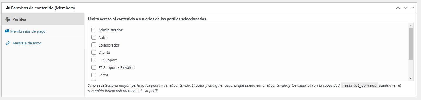 El cliente está utilizando el plugin Membership & User Role Editor Plugin para añadir seguridad de perfiles en algunas páginas. Aunque las traducciones de las páginas funcionan correctamente, la seguridad de perfiles no se replica en las páginas traducidas.
