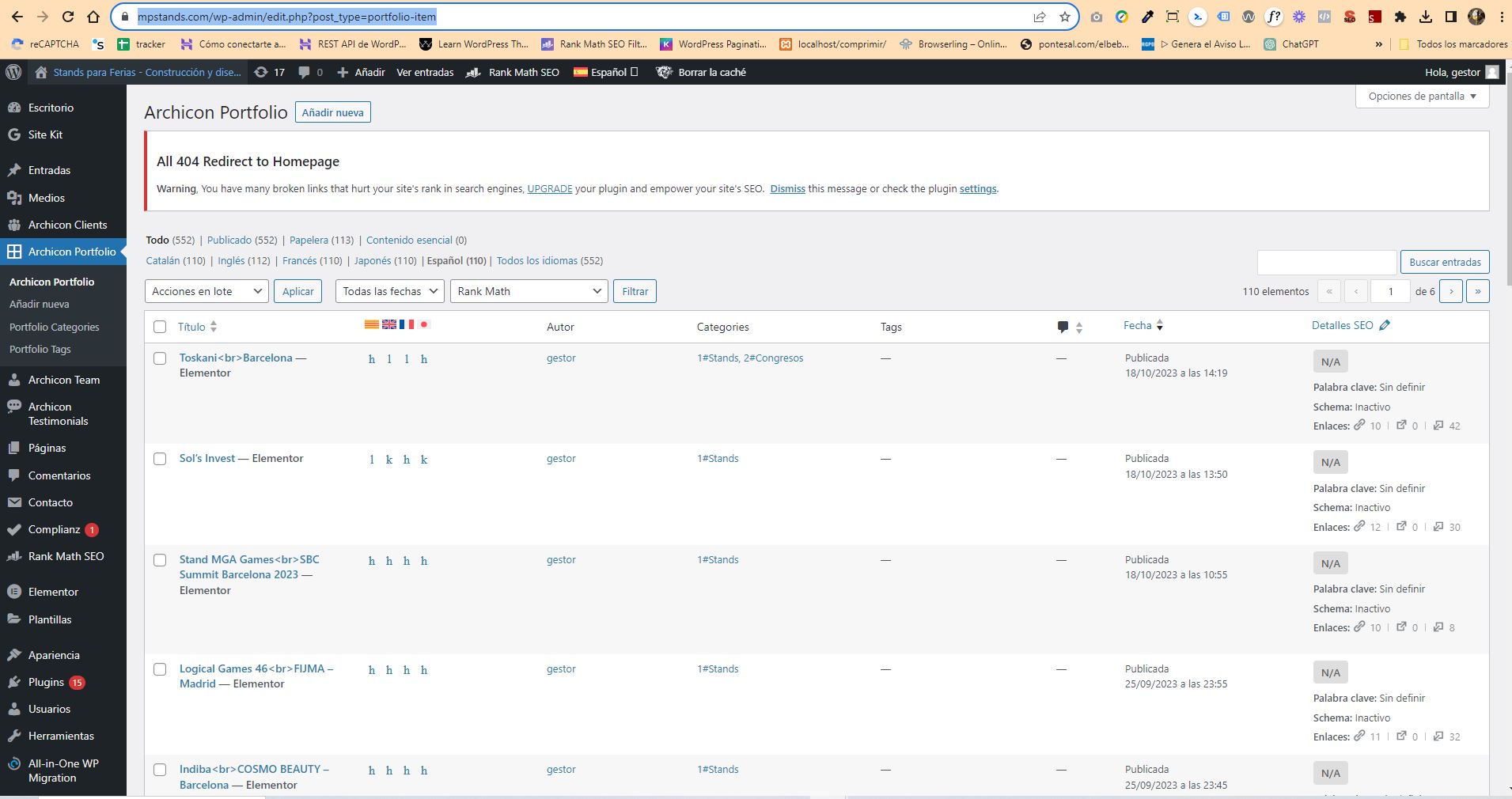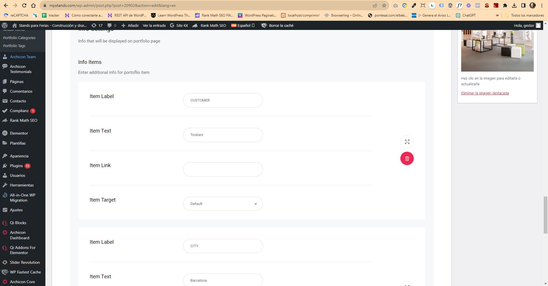 Este problema está localizado en esta página, pero en otras de proyectos sucede algo parecido, como las que páginas que pertenecen a los posts "Archicon portfolios" (enlace oculto). Si se edita el idioma principal, acaba afectando a los secundarios. Y unos metacampos que tienen estas páginas, aunque se traduzcan en sus respectivos idiomas, no se actualizan ni en el back ni en el front.