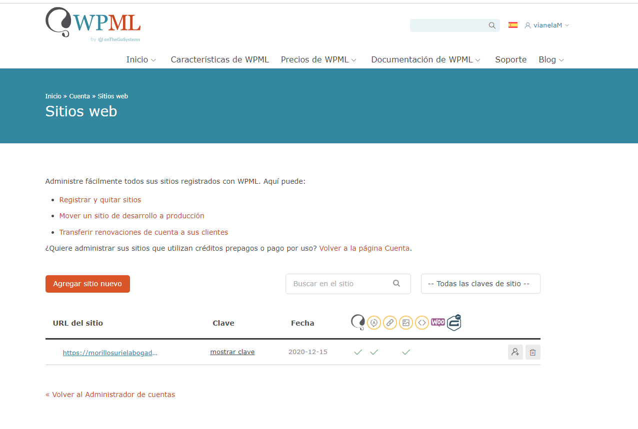 - Luego vaya a https://wpml.org/es/account/sitios/