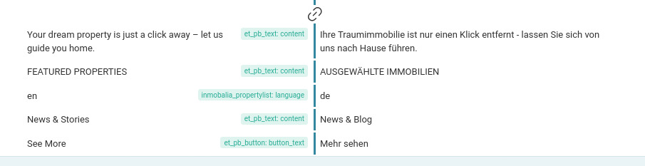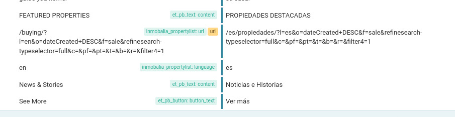 Necesitamos que un display de propiedades (featured properties) aparezca en la homepage de nuestra web, específicamente en la versión traducida del inglés al alemán (en la versión traducida del inglés al español, se ve correctamente). Vía código hemos resuelto el problema, pero no es la idea, obviamente.
