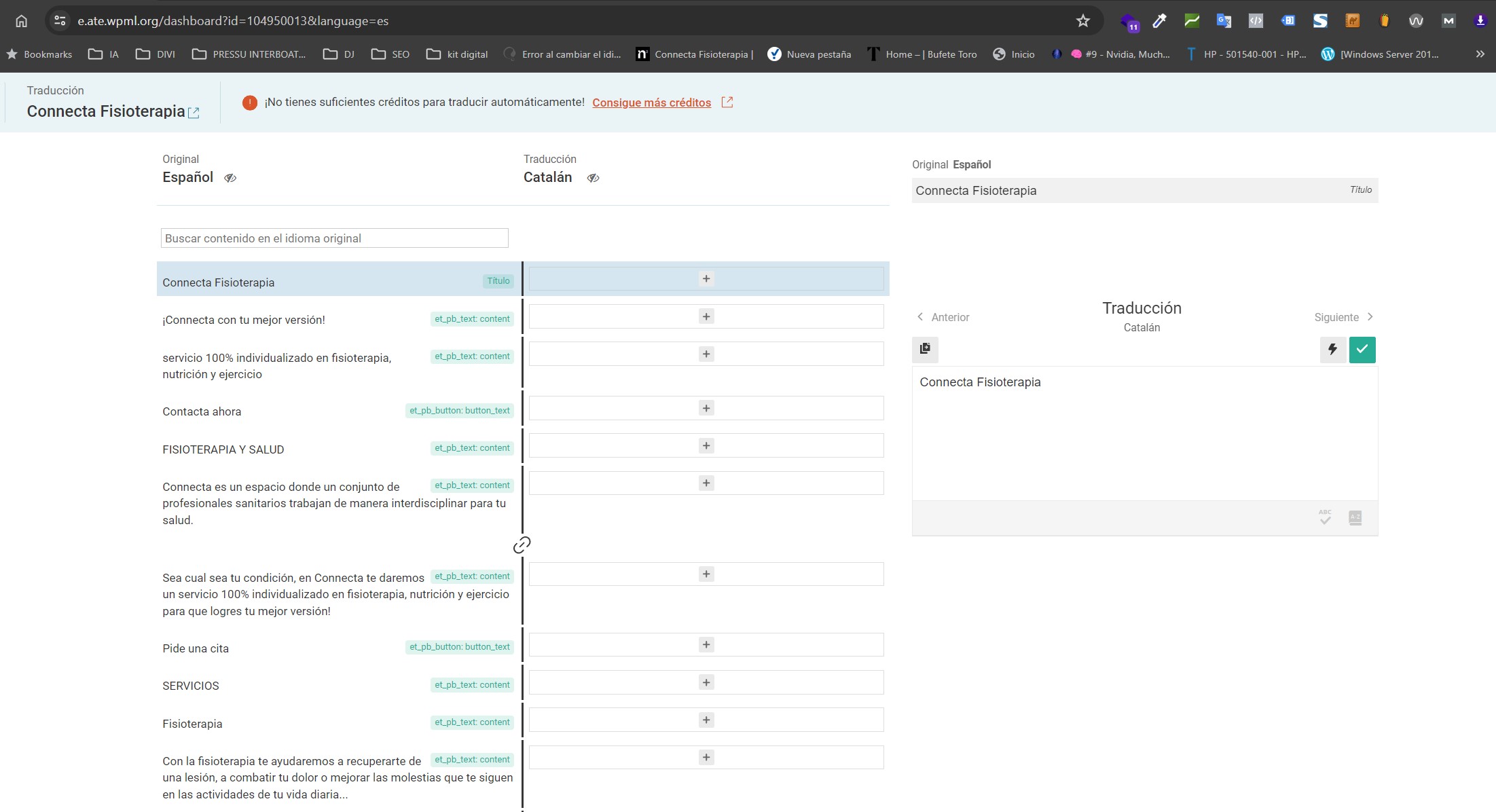 However, the Catalan translation should still be working on the frontend. If you want, you can copy the translation from the frontend and paste it into the Catalan translation section. This way, you can fully complete the Spanish to Catalan translation.