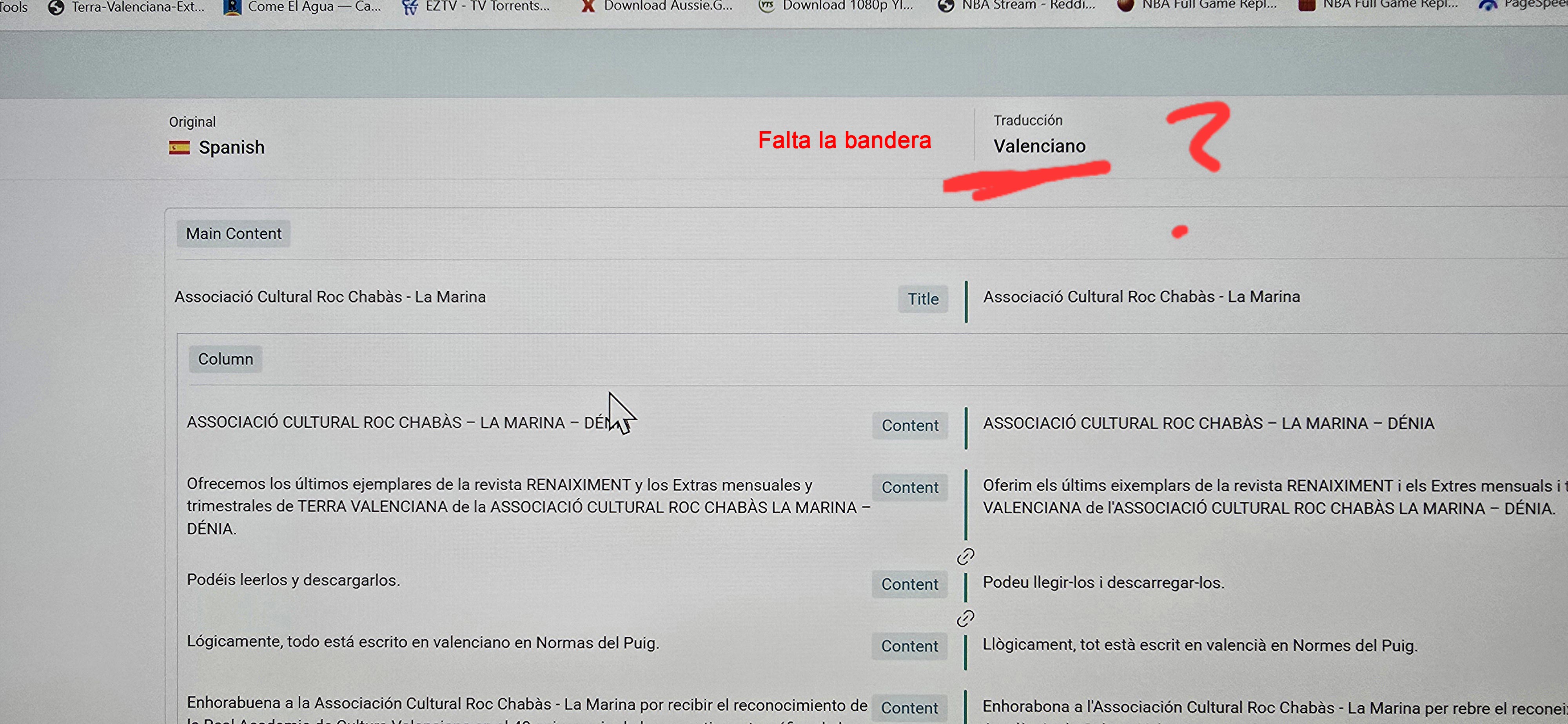 Aquí un pantallazo de la pagina de traducción en valenciano pero con la bandera desaparecida |