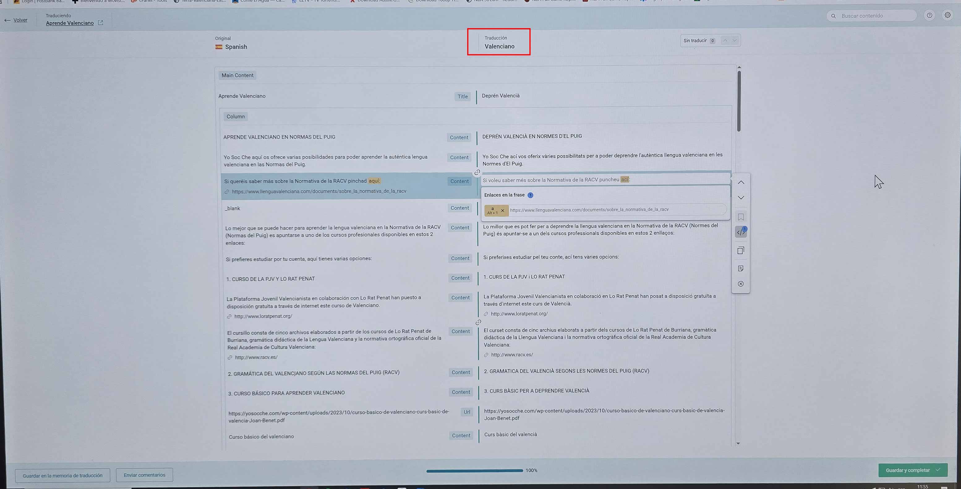 Carlos, la base de datos la habrás arreglado en el sitio staging. En el de producción la traducción valenciana sigue estando con el CTE (como en imagen mandado anteriormente) mientras la traducción inglesa está con el ATE. Por favor indícame como activar y desactivar el ATE en una página específica como en este caso. |