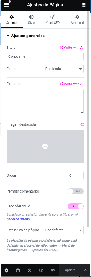 El cliente quiere ocultar el título de una página en español y que también esté oculto en su traducción al inglés.