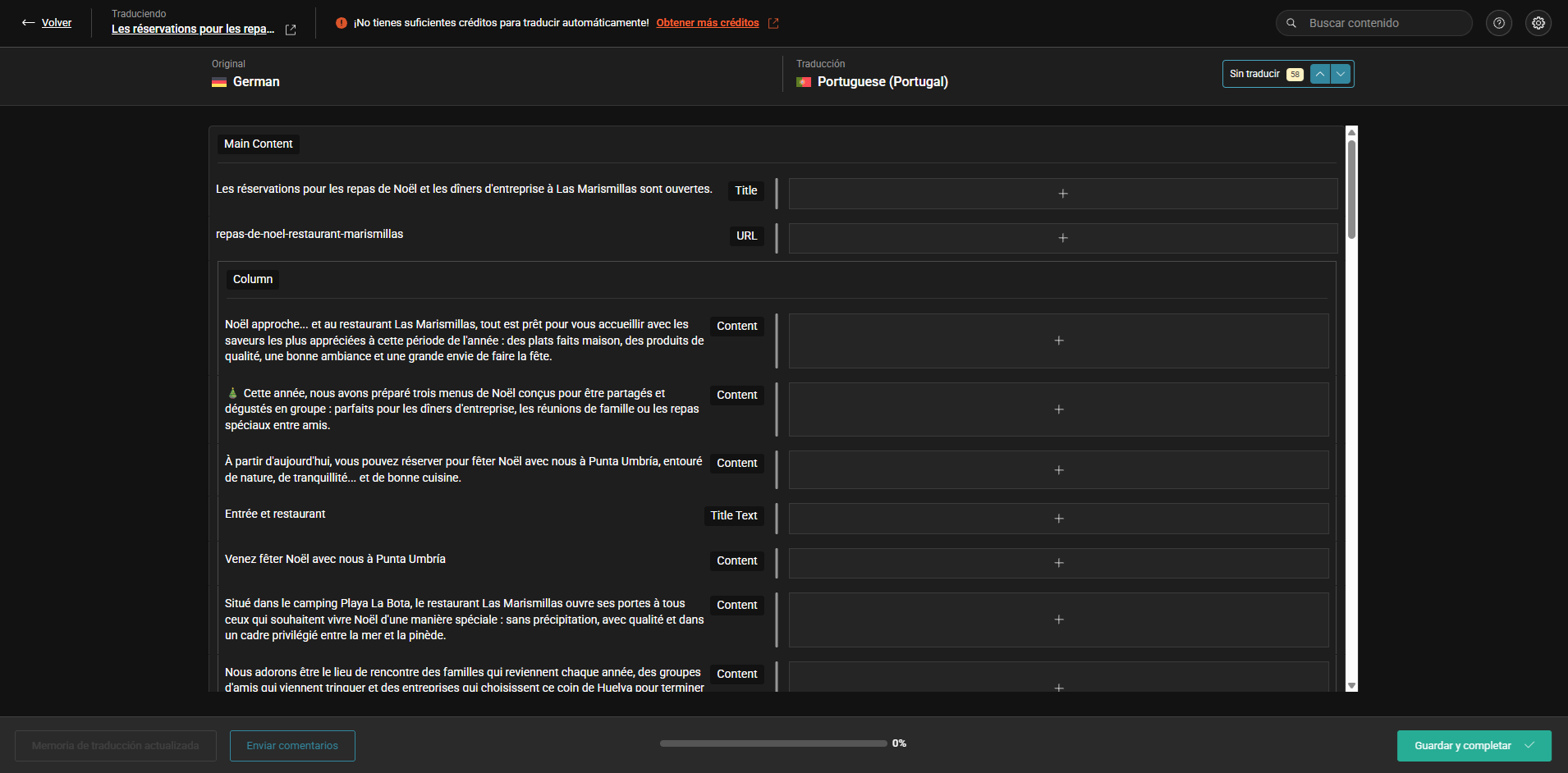 Estoy intentando traducir el último artículo de español a portugués usando WPML.