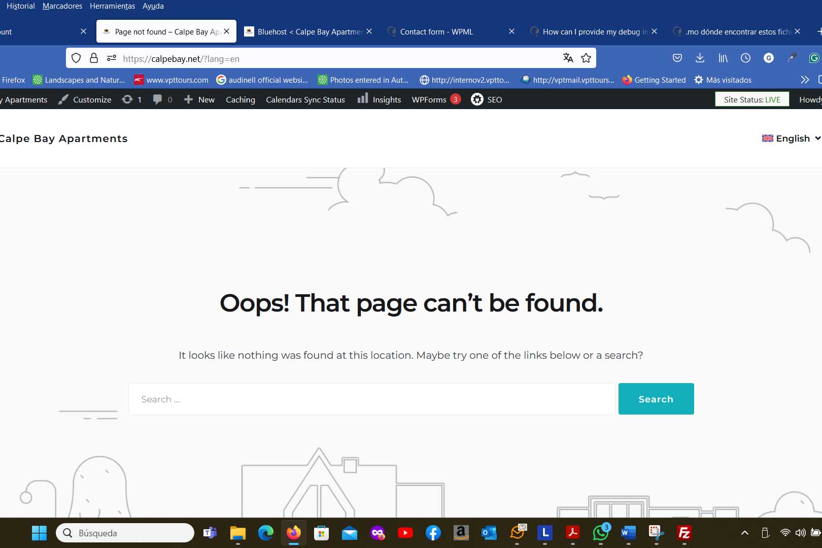 El cliente está instalando WPML y aunque el idioma original en español funciona correctamente, los otros idiomas muestran un mensaje de error indicando que la página no puede ser encontrada. Además, menciona problemas con la localización de temas y plugins y un límite de memoria insuficiente.