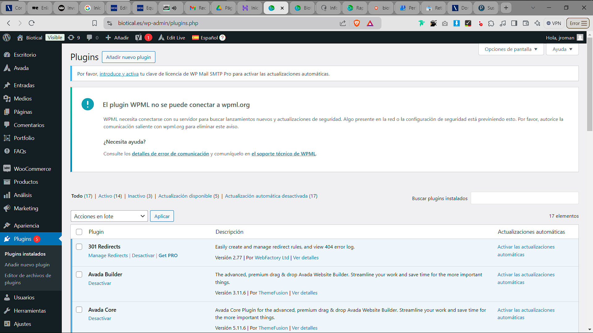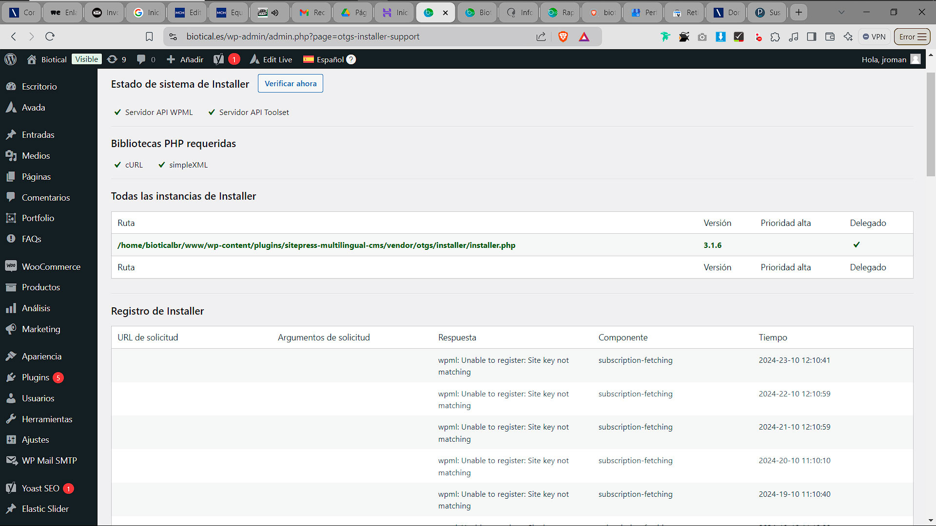 Estás intentando conectar WPML para actualizaciones en tu sitio y te encuentras con un error que indica que la clave del sitio no coincide con la suscripción.