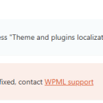 Es posible que esta solución sea irrelevante debido a que está desactualizada o no se aplica a tu caso. Si después de seguir estos pasos el problema persiste, te recomendamos abrir un nuevo ticket de soporte. También te sugerimos revisar los problemas conocidos en https://wpml.org/known-issues/, verificar la versión de la solución permanente y confirmar que tienes instaladas las últimas versiones de los temas y plugins. Para más asistencia, visita nuestro foro de soporte en https://wpml.org/es/forums/forum/soporte-en-espanol/.