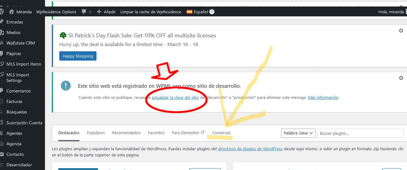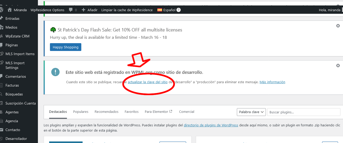 Además, hemos detectado un posible problema con tu cuenta. Parece que has registrado dos sitios web en wpml.org, pero tu cuenta solo permite utilizar un sitio web de producción. Puedes revisar los sitios registrados en tu cuenta de WPML. Recuerda que con la cuenta "Multilingual Blog" solo puedes tener un sitio de producción y tres sitios de desarrollo.
