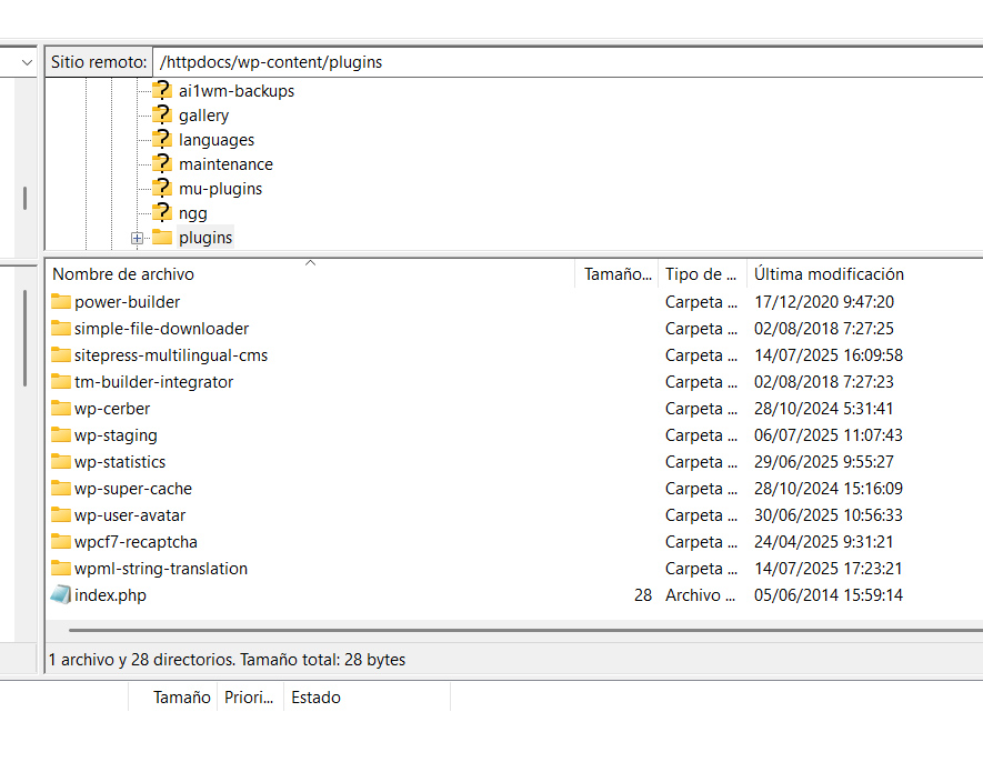 Problema: El cliente está intentando actualizar el plugin sitepress-multilingual-cms.4.7.6 y enfrenta problemas tanto al actualizar desde el back-end como utilizando la aplicación OTGS installer. Además, después de eliminar y regenerar el registro del sitio en el panel de WPML, logró instalar WPML Multilingual CMS y WPML String Translation, pero este último no aparece en la lista de plugins instalados a pesar de estar presente en el servidor via FTP. Solución: Confirmamos que ambos plugins, WPML Multilingual CMS y WPML String Translation (este último aparece como 'Traducción de cadenas'), se instalaron correctamente. Realizamos pruebas rápidas y verificamos que todo funciona como debería. Si estás experimentando este problema, te recomendamos verificar la lista de plugins bajo diferentes nombres, ya que algunos pueden aparecer con su traducción en español.