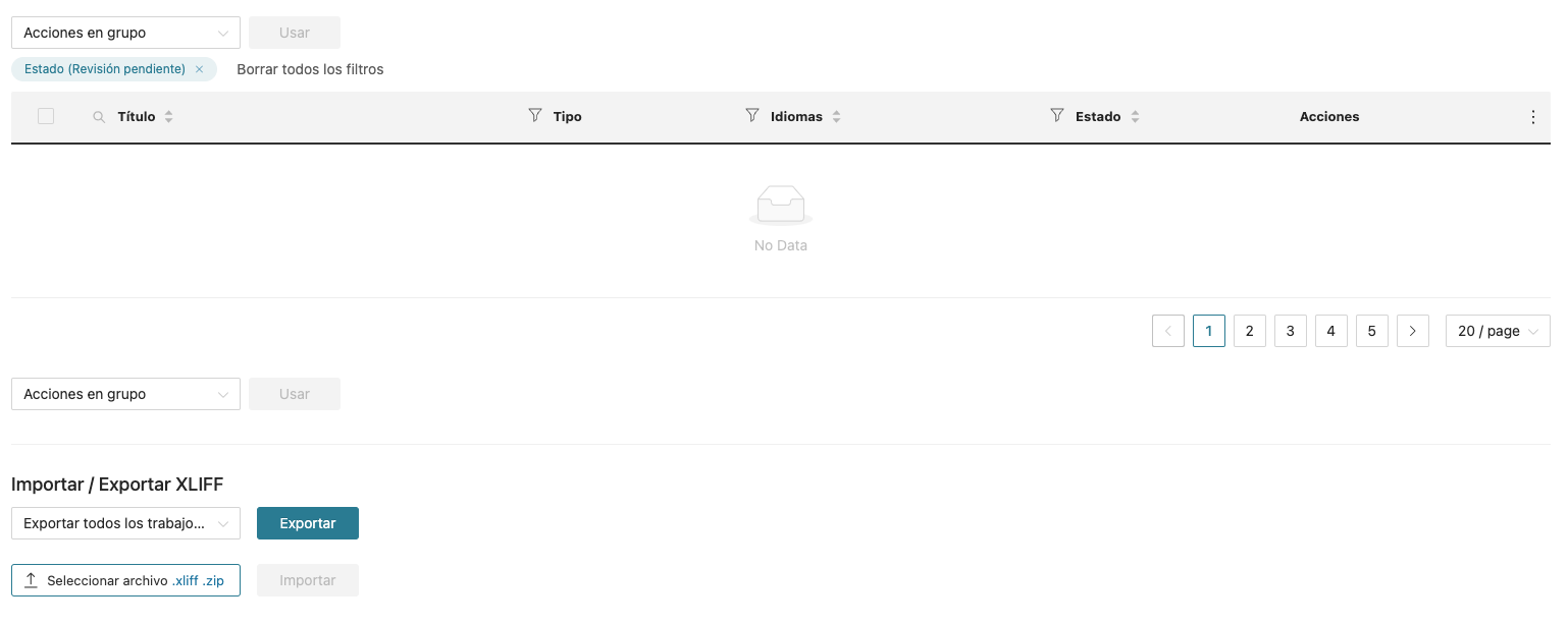 Si estás experimentando este problema, te recomendamos que verifiques si las traducciones aparecen al quitar el filtro de la pantalla de Traducciones. Esto puede ayudar a visualizar las traducciones pendientes.