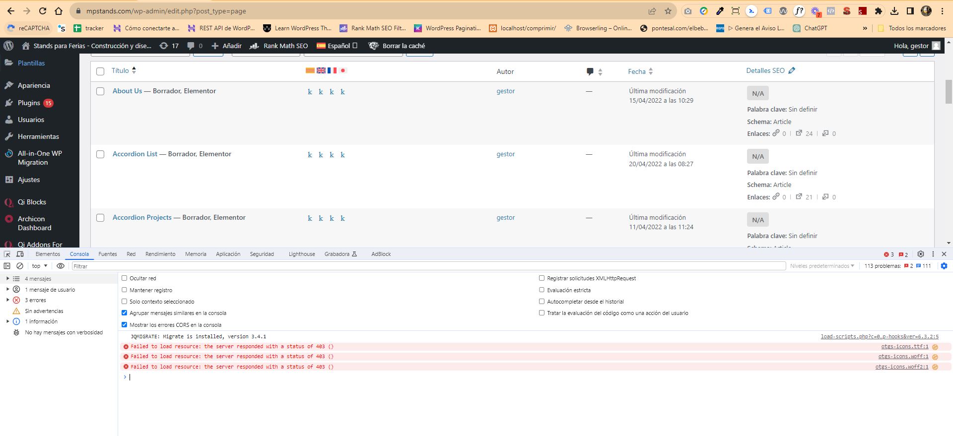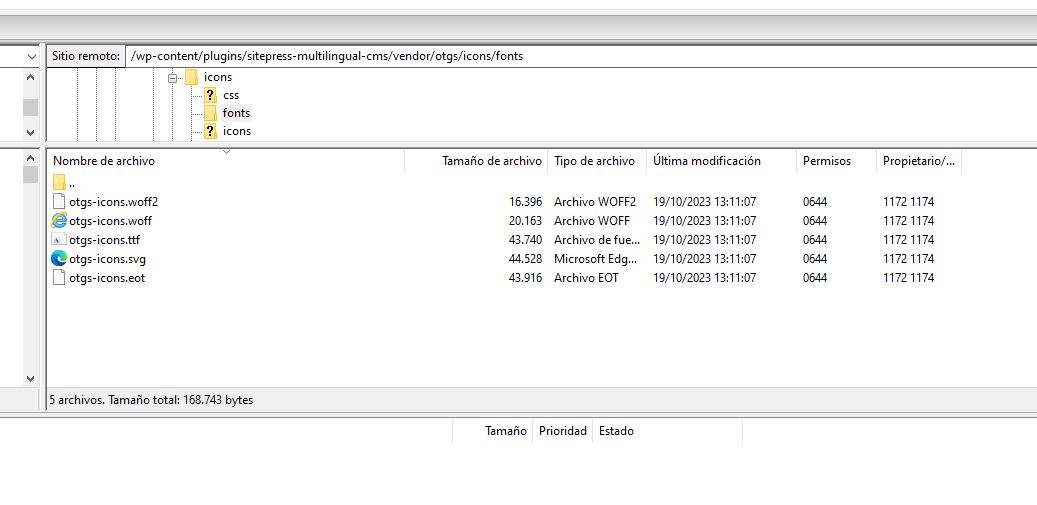 Esta web es una migración de una web que estaba en desarrollo. En esta última no daba problemas los iconos, pero al migrarla con el plugin All-in-one-migration han desaparecido todos los iconos que genera el plugin wpml en el backoffice.