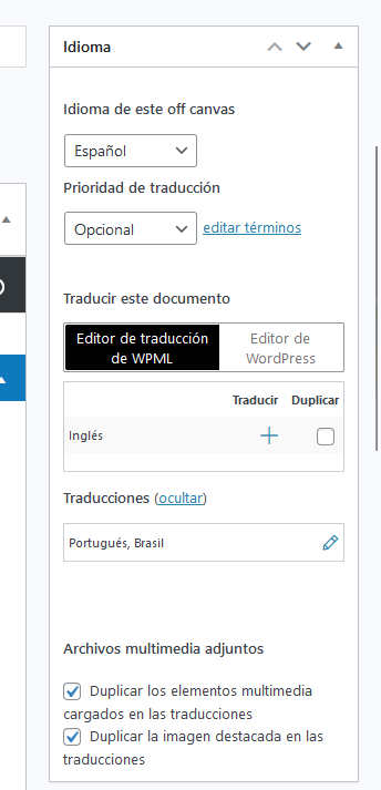 Buenas, hasta ahora he podido traducir bien toda mi pagina pero he tenido un problema y es que el OffCanvas que tengo de Avada no se traduce. Adjunto como lo tengo traducido y si es la manera correcta.