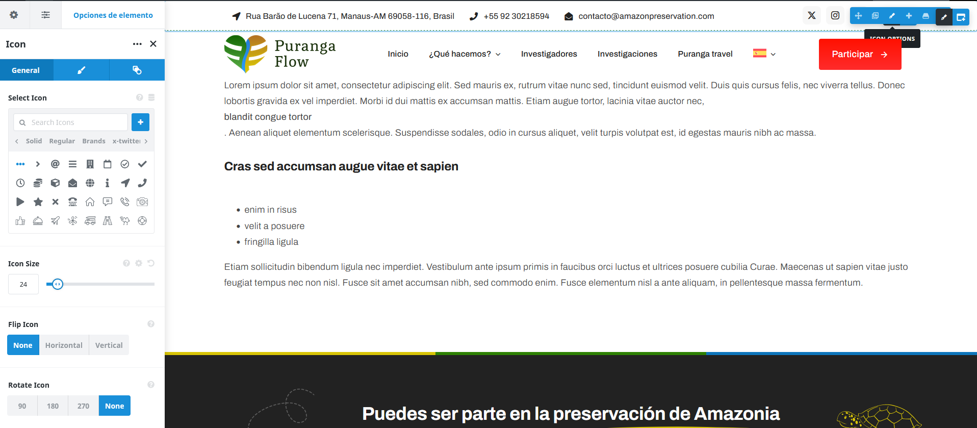 Problema: El cliente no puede traducir el OffCanvas de Avada en su sitio web.