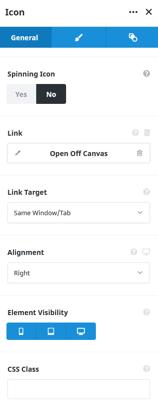 Esos son los pasos para editar el Off Canvas, pero lo que necesito saber es cómo añade el icono de los tres puntos en el Top Header del sitio para que cuando se haga click aparezca el Off Canvas.