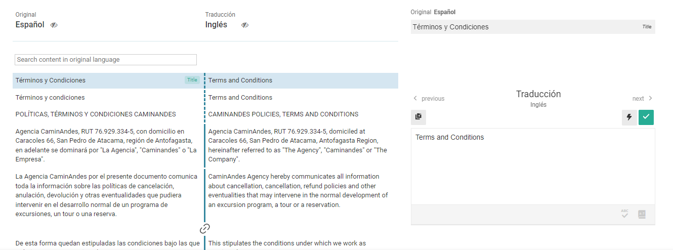 1.- La traducción de la página 'Términos y Condiciones' en Inglés no está publicada, por lo que no puedo verla. Le pido que publique la traducción y compruebe si el problema desapareció.