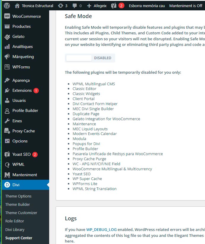 Si, te doy permiso, aunque si quieres, puedes ir a Divi->Support Center ->Safe Mode y activarlo, puede que te sirva esta función sin tener que instalar nada. |