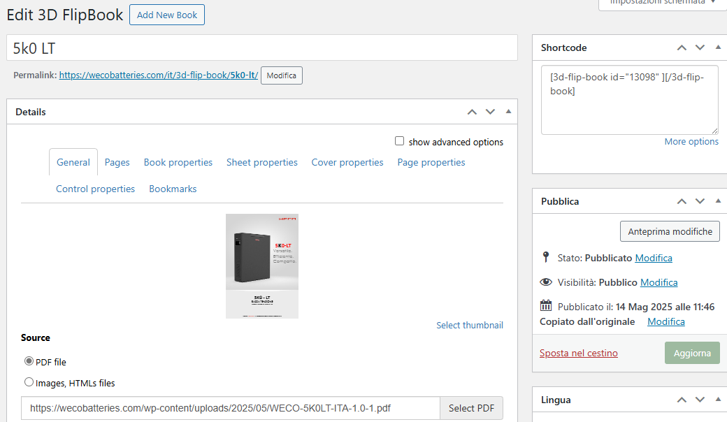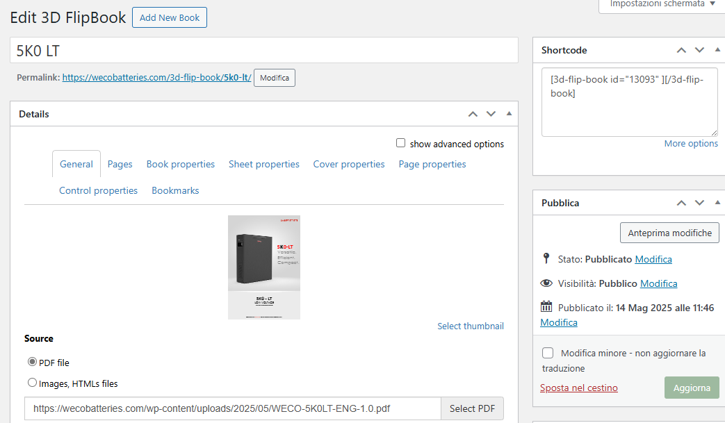 C'è da dire che, anche se modifico il PDF nei post di Flipbook, gli ID e lo shortcode rimangono invariati.