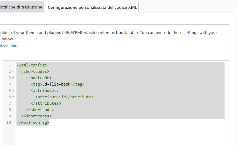 Come posso evitare l'aggiornamento delle traduzioni per lo shortcode di 3D Flipbook?
