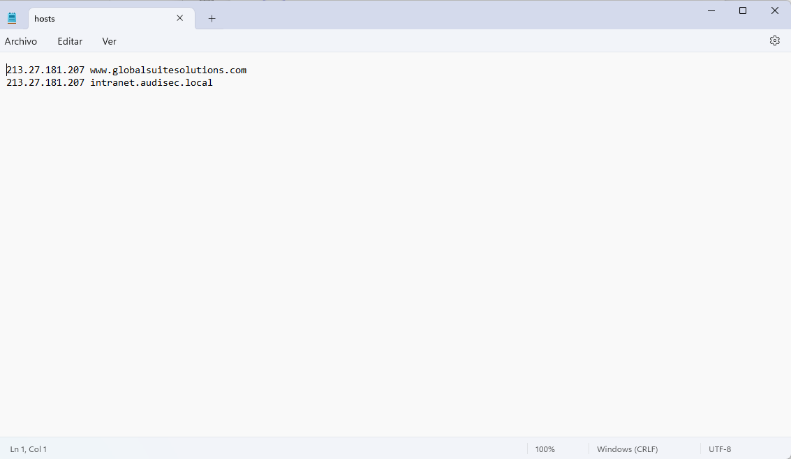 Hola, Tiene razón, ese es el problema. Estoy viendo la web incorrecta. Sin embargo el archivo hosts está configurado correctamente por lo que no entiendo que puede estar pasando. |
