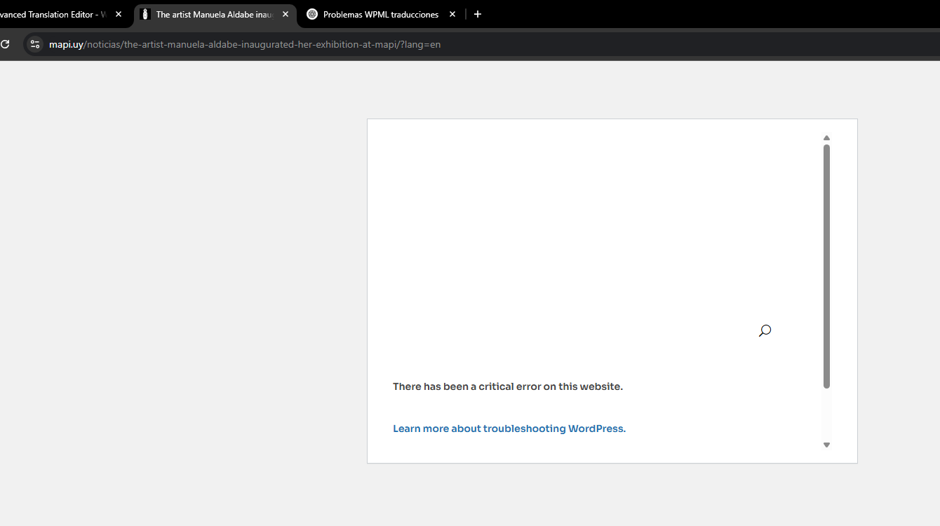Si estás intentando mantener visibles las traducciones ya creadas y publicadas de tus Custom Post Types y estas aparecen como si necesitaran actualizarse sin haber modificado el contenido original o la traducción, y al intentar visitar la versión traducida encuentras un error crítico (pantalla blanca con mensaje de error crítico), este resumen es para ti.