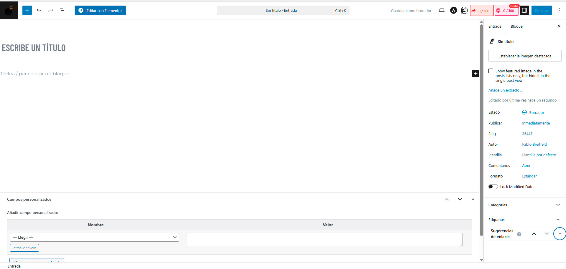 Si estás experimentando que tus entradas se crean por defecto en portugués en lugar de en español, y no puedes definir el idioma de una entrada al crearla porque no aparece la opción de idioma en el editor de entradas.