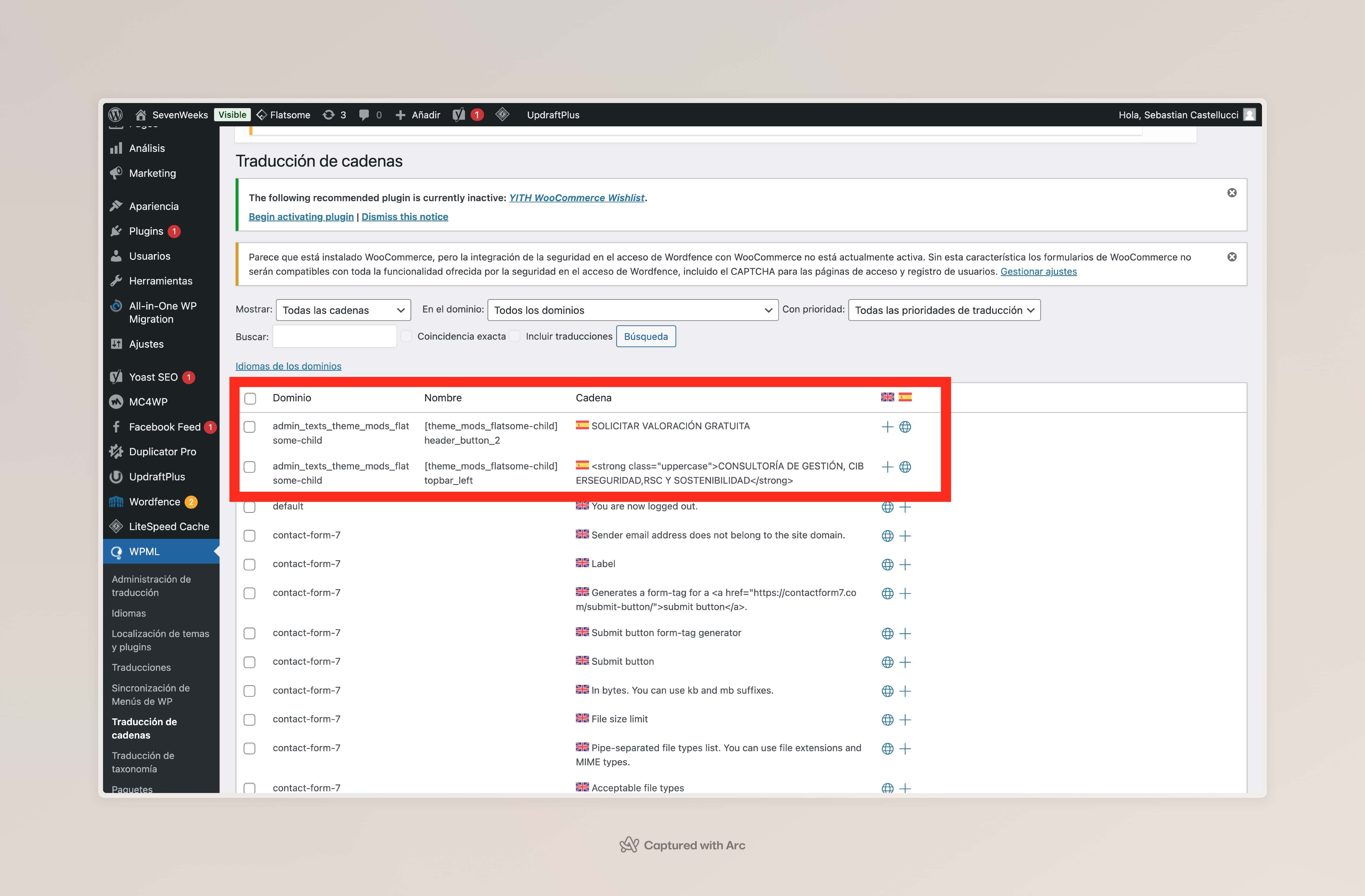 Hemos encontrado que las cadenas que necesitas traducir están clasificadas como cadenas de administrador. Para traducirlas, dirígete a WPML > Traducción de cadenas. Puedes encontrar más detalles sobre cómo acceder y traducir estas cadenas en la siguiente documentación de WPML: https://wpml.org/documentation/getting-started-guide/string-translation/finding-strings-that-dont-appear-on-the-string-translation-page/#translate-admin-and-settings-strings