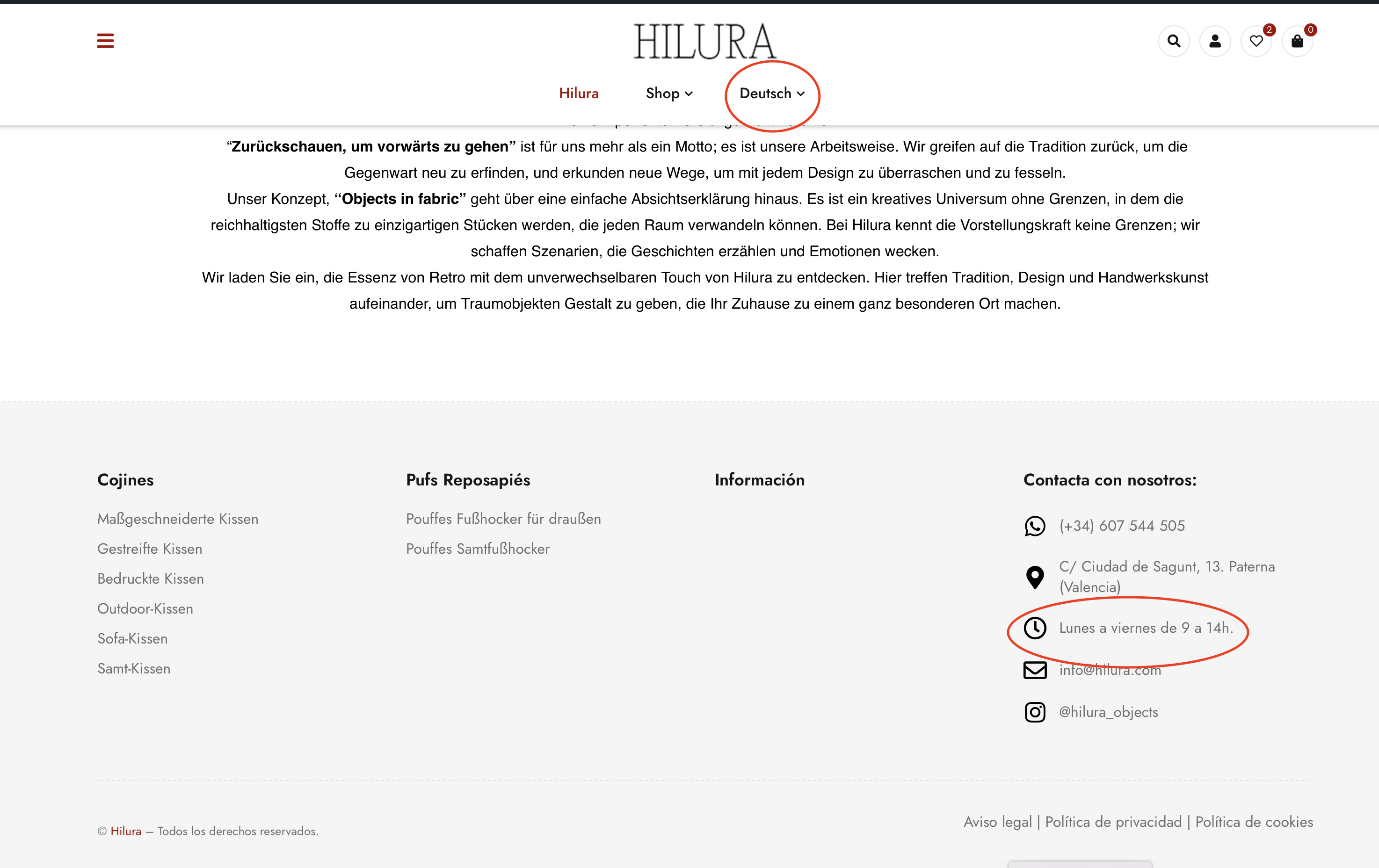 Las traducciones realizadas no aparecen en el sitio web, específicamente en el pie de página y en las páginas de producto personalizadas.