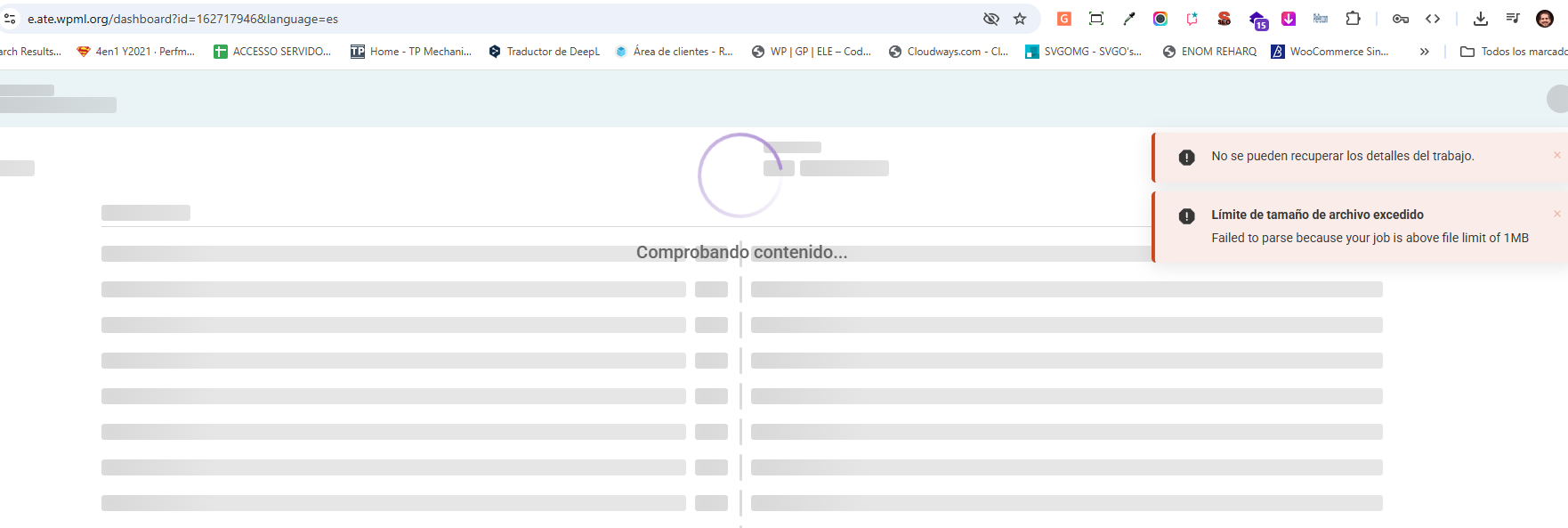 Hola de nuevo Ya que no hemos conseguido solucionarlo he vuelto a activar cache y he procedido a hacer la traducción de manera manual, pero salta este error (adjunto captura) Quizás reside ahí el error? en el tamaño? |