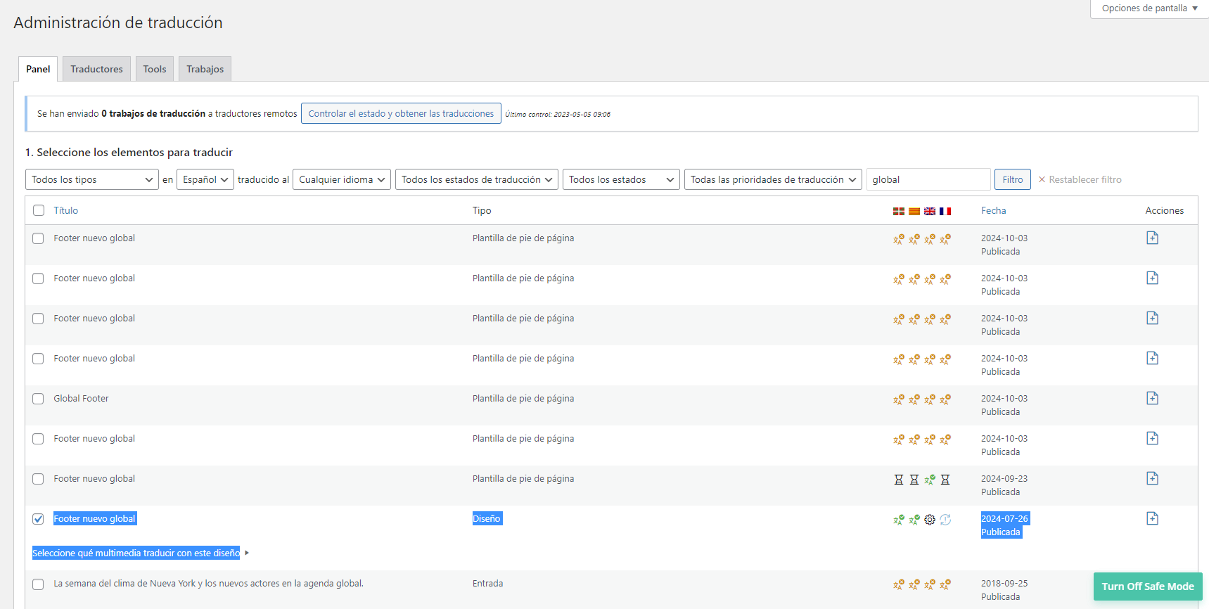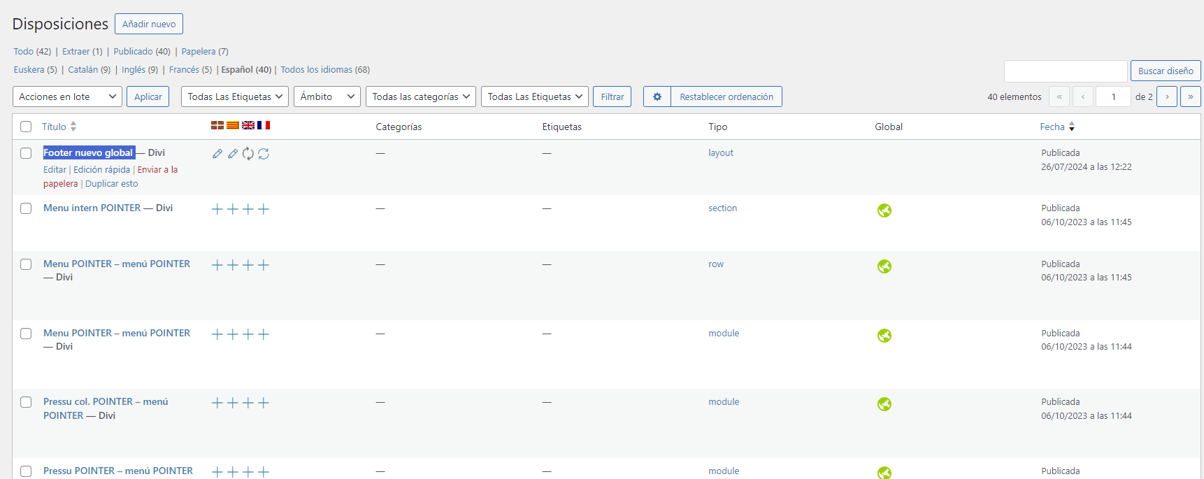 [Resuelto] Usando DIVI tengo el footer traducido en varios idiomas, pero no se muestran cuando cambio de idioma