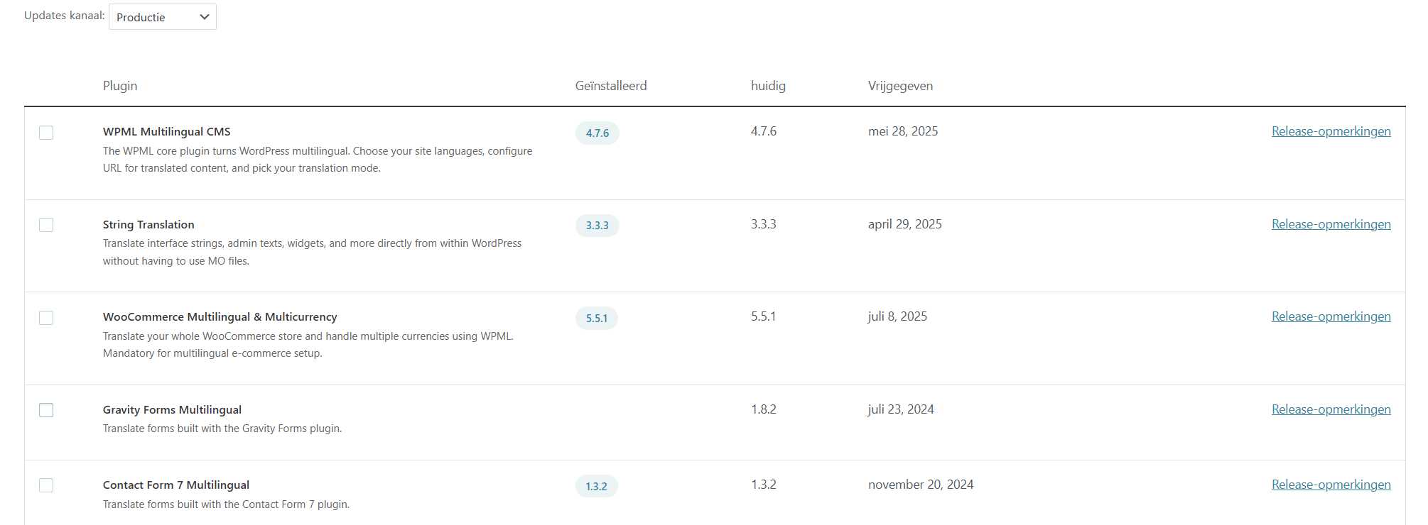Plugin Geïnstalleerd huidig Vrijgegeven