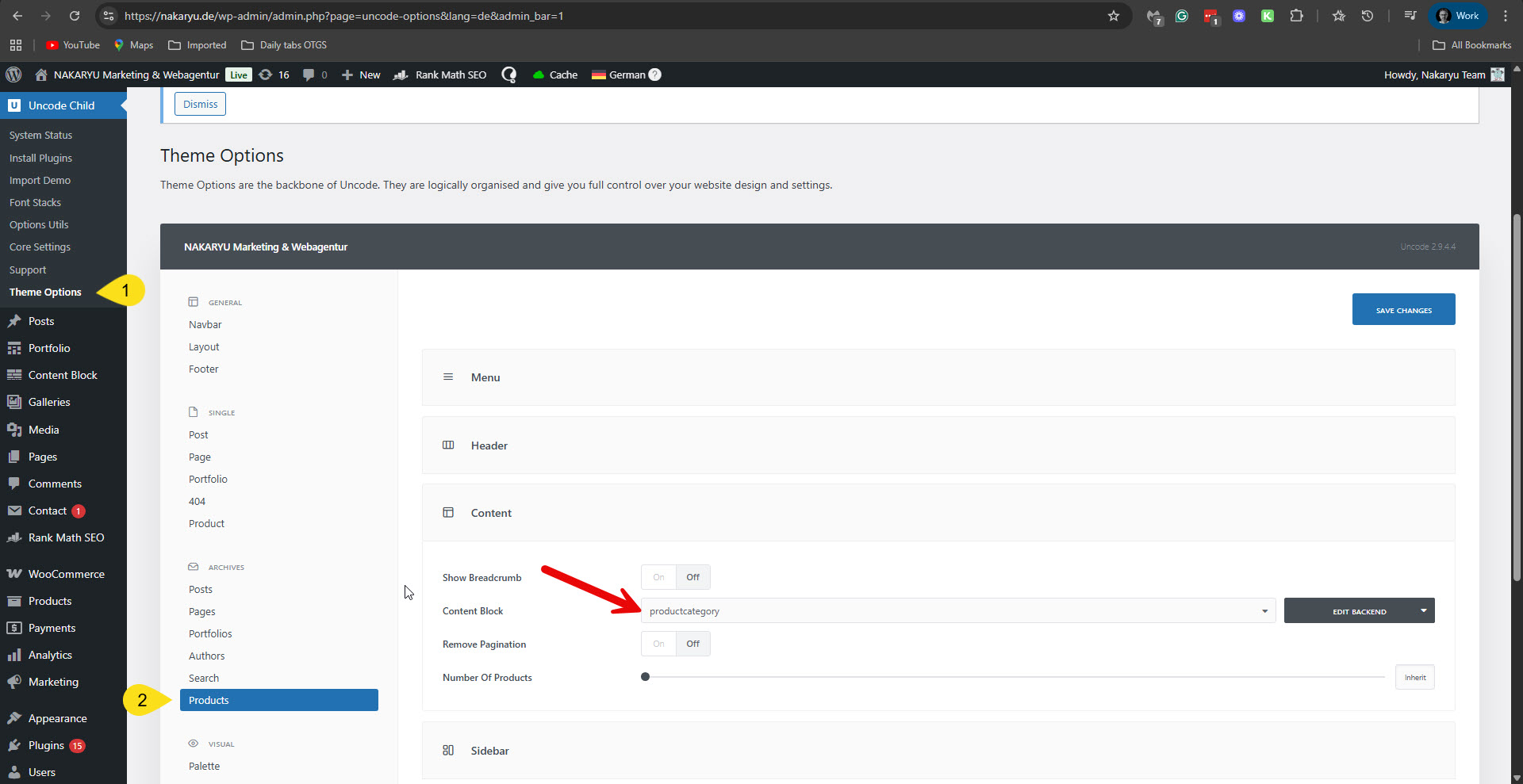 When I go to Uncode Child -> Theme Options -> Products, I can see that the selected Content Block is 'productcategory'. Please see the attached screenshot. Can you please explain this discrepancy? Regards, |